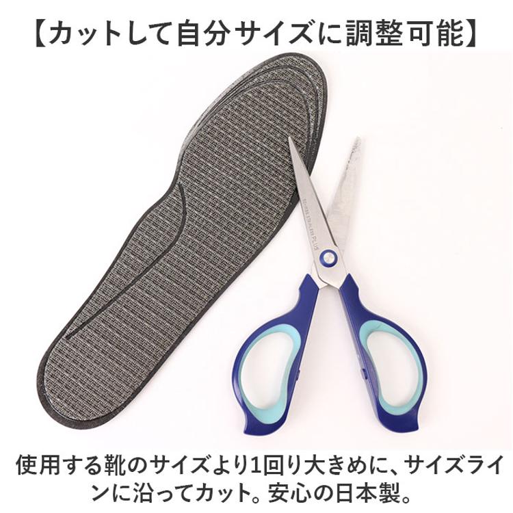 ・使用する靴のサイズより1回り大きめに、サイズラインに沿ってカット。安心の日本製。
