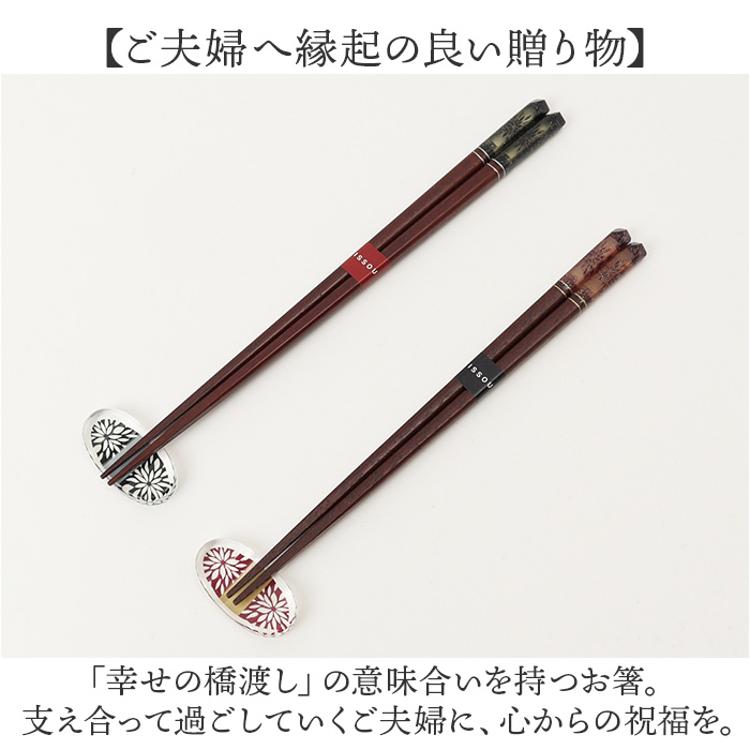 ・「幸せの橋渡し」の意味合いを持つお箸。支え合って過ごしていくご夫婦に、心からの祝福を。