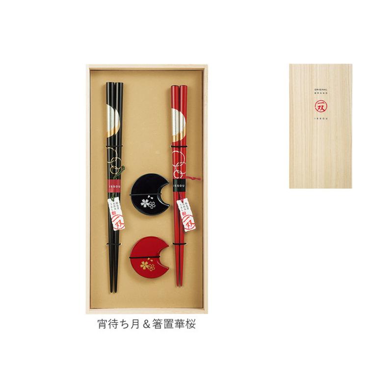 ・瑞雲&箸置暁月/宵待ち月&箸置華桜:[表面塗装の種類]漆塗装、[素地の種類]天然木