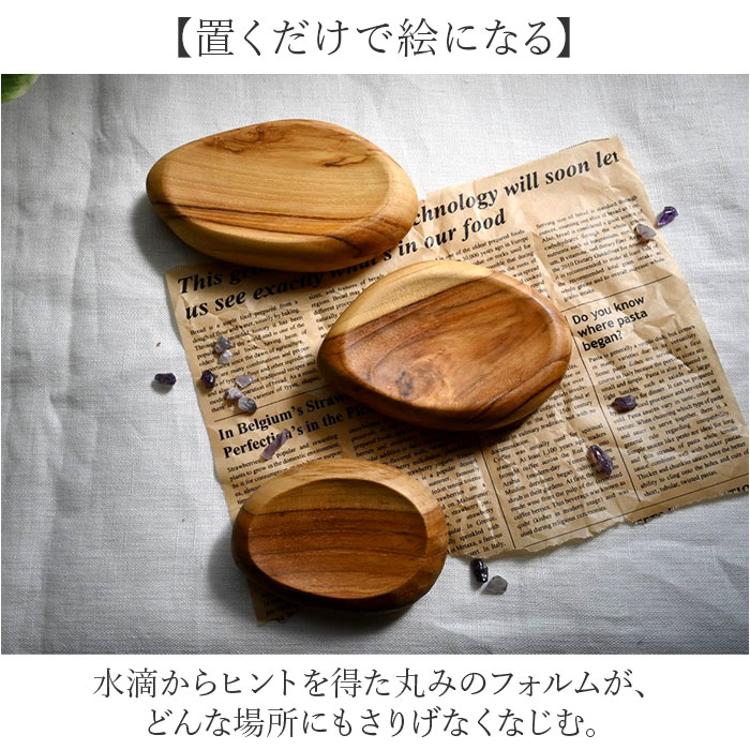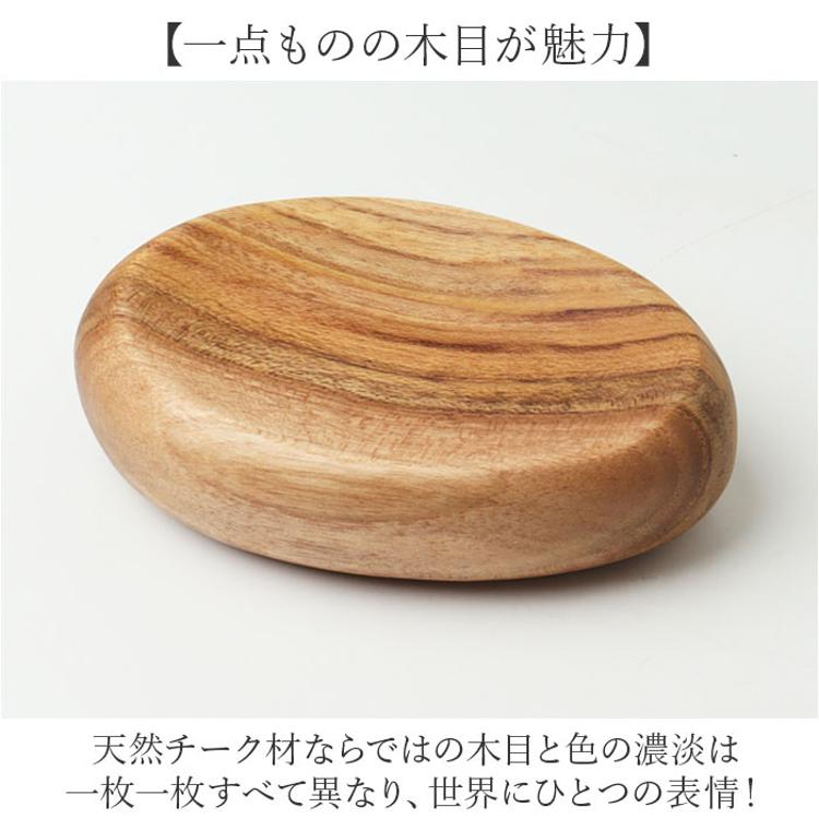 ・チーク材の丸みあるドロップ型で美しく飾れるWooden drop plate S。