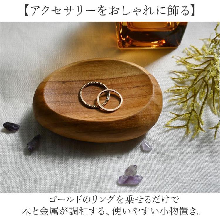 ・ゴールドのリングを乗せるだけで木と金属が調和する、使いやすい小物置き。