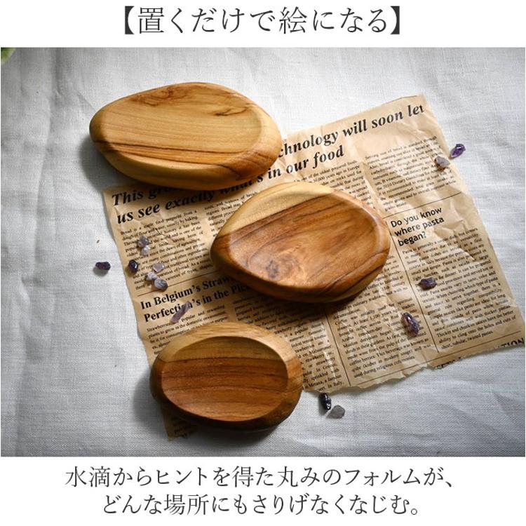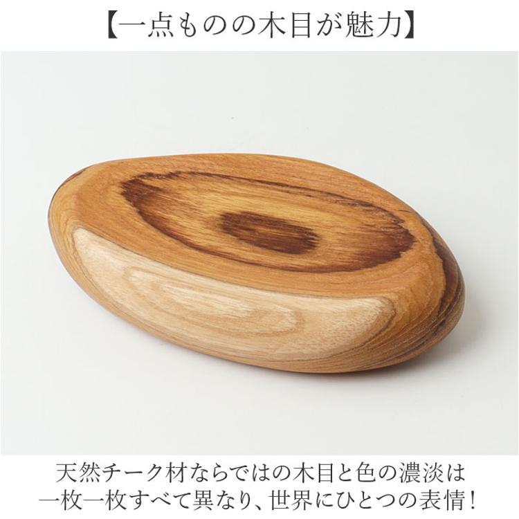 ・チーク材の丸みあるドロップ型で美しく飾れるWooden drop plate L。