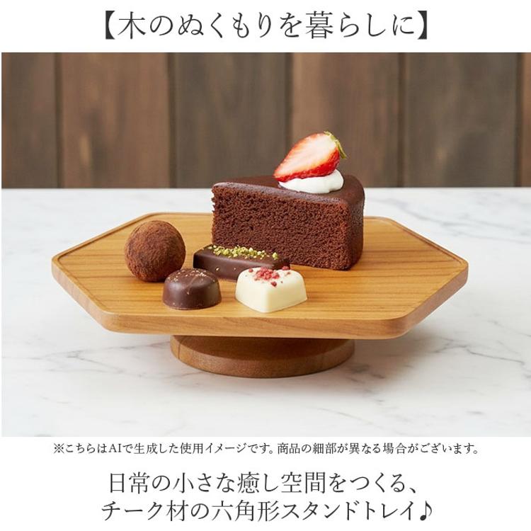 ・日常の小さな癒し空間をつくる、チーク材の六角形スタンドトレイ♪