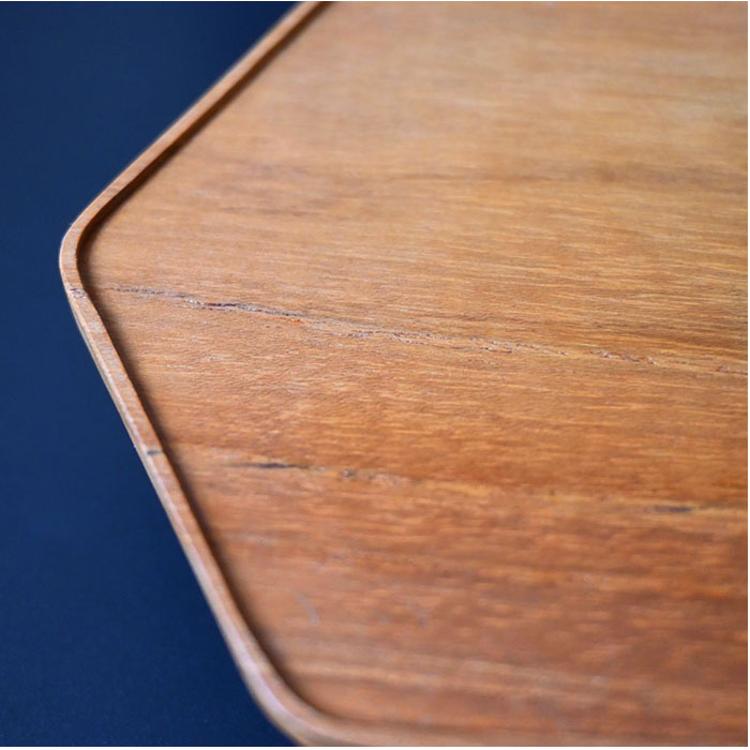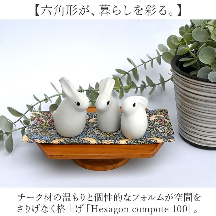 ・チーク材の温もりと個性的なフォルムが空間をさりげなく格上げ「Hexagon compote 100」。