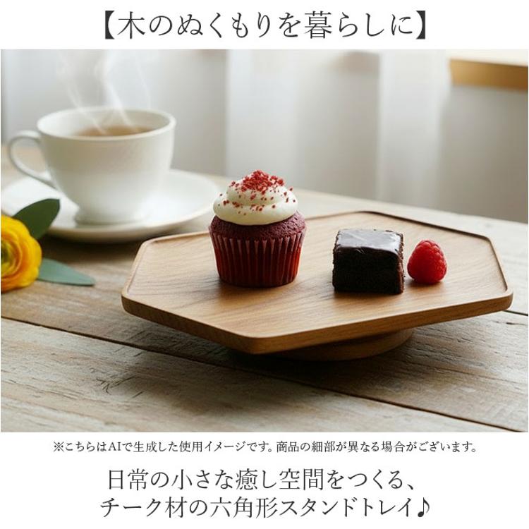 ・日常の小さな癒し空間をつくる、チーク材の六角形スタンドトレイ♪