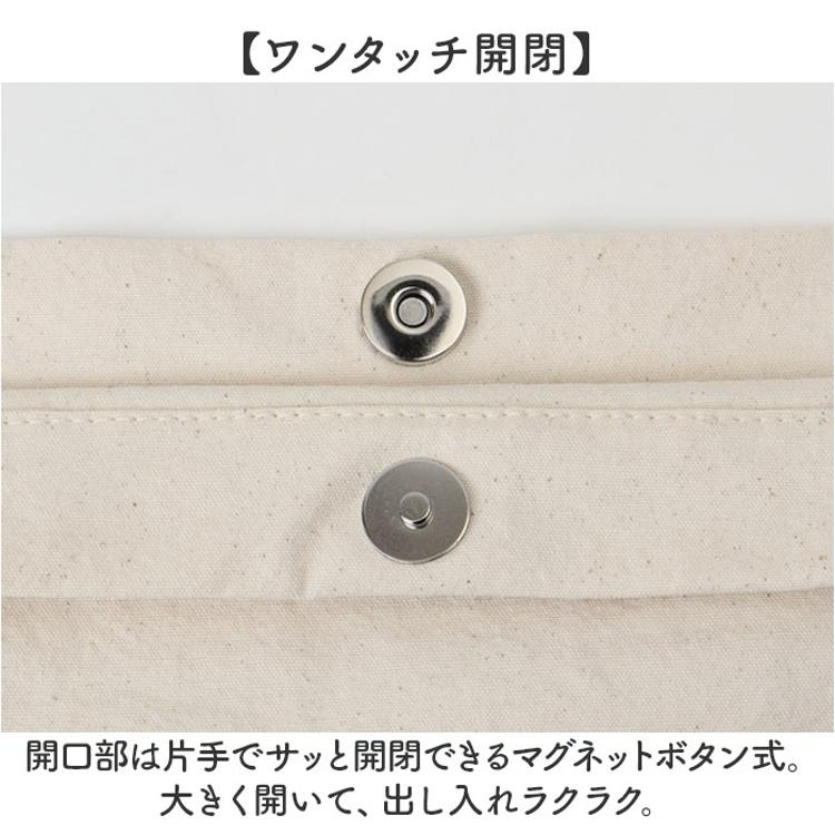 ・開口部は片手でサッと開閉できるマグネットボタン式。大きく開いて、出し入れラクラク。