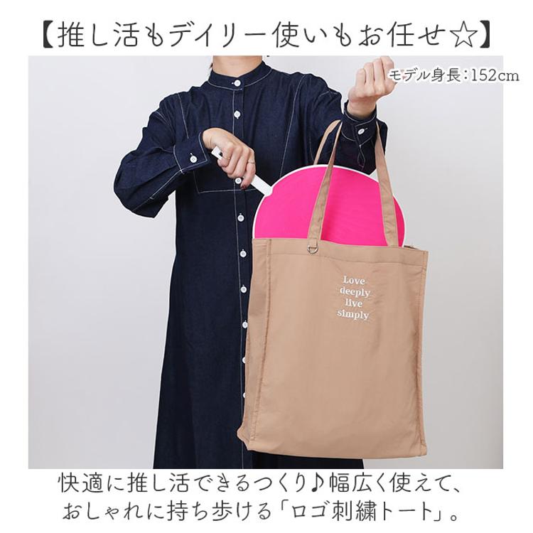 ・快適に推し活できるつくり♪幅広く使えて、おしゃれに持ち歩ける「ロゴ刺繍トート」。