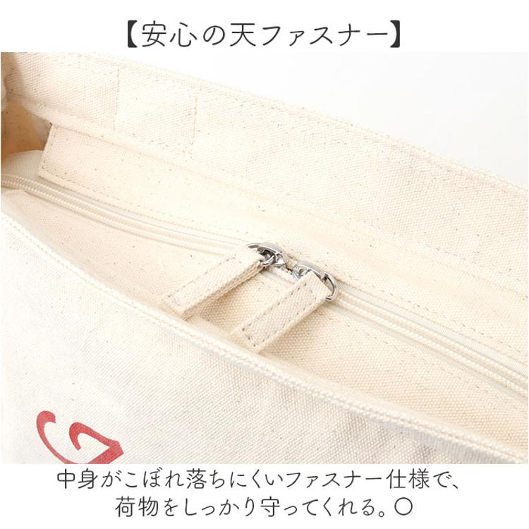 ・中身がこぼれ落ちにくいファスナー仕様で、荷物をしっかり守ってくれる。〇