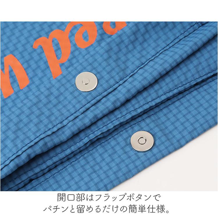 ・開口部はフラップボタンでパチンと留めるだけの簡単仕様。