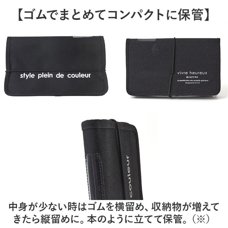 ・中身が少ない時はゴムを横留め、収納物が増えてきたら縦留めに。本のように立てて保管。