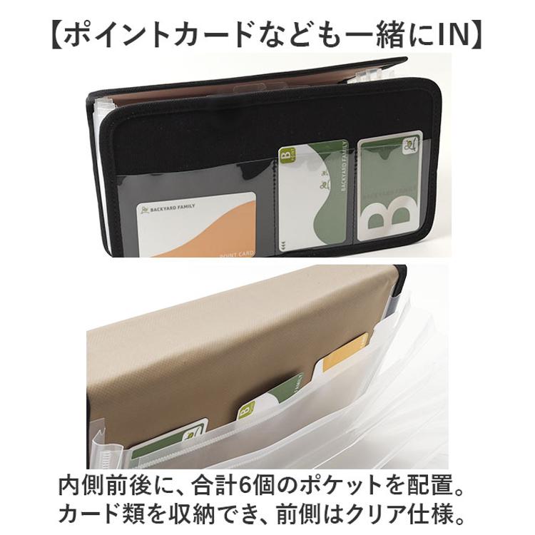 ・内側前後に、合計6個のポケットを配置。カード類を収納でき、前側はクリア仕様。