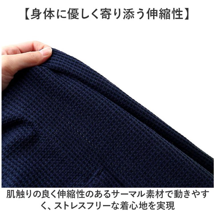 ・肌触りの良く伸縮性のあるサーマル素材で動きやすく、ストレスフリーな着心地を実現
