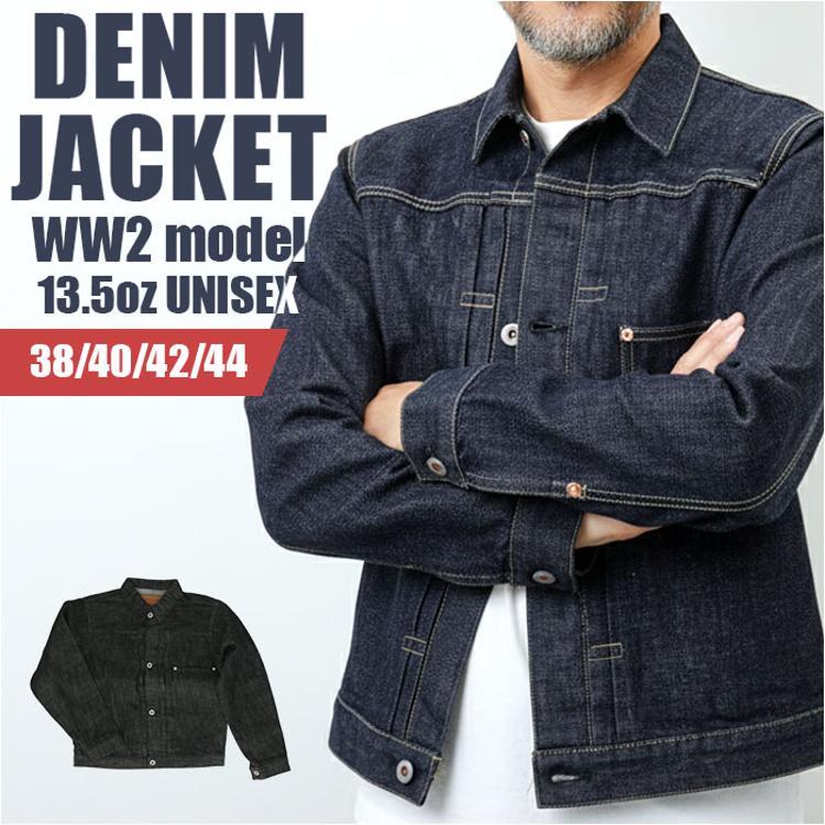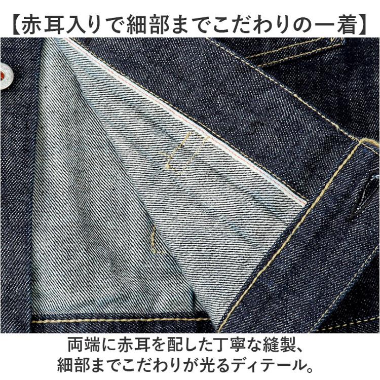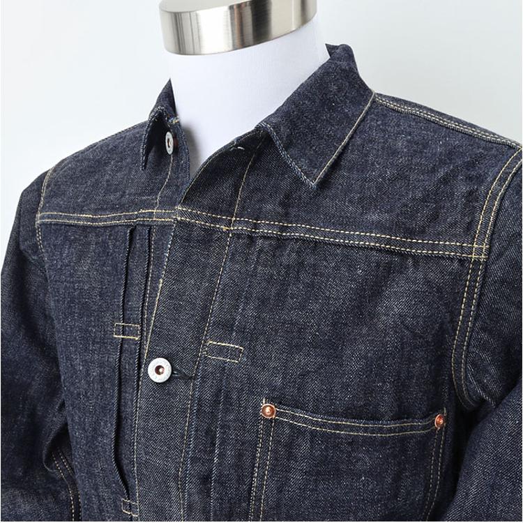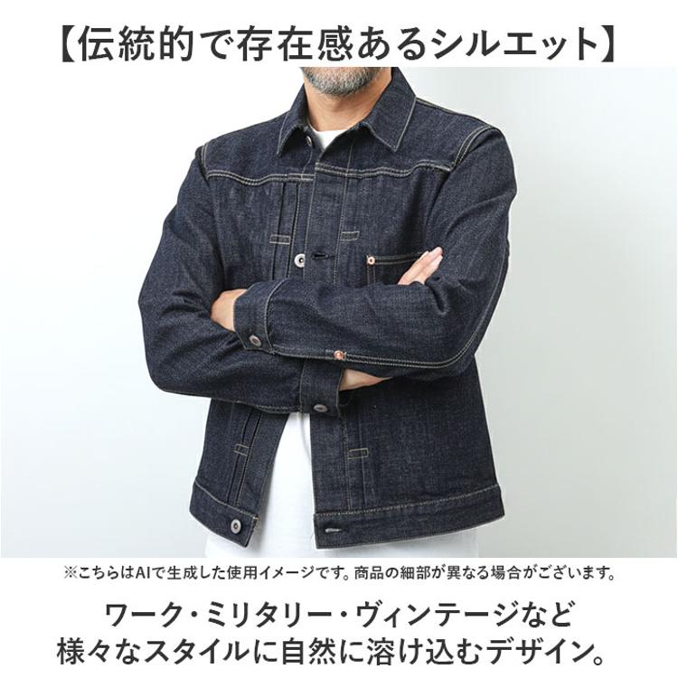 ・13.5オンスのセルビッジデニムを使用した「デニムジャケット 大戦モデル ラベルあり」。
