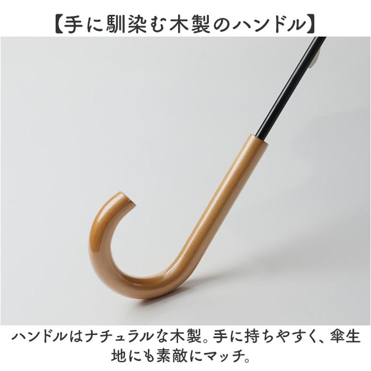 ・ハンドルはナチュラルな木製。手に持ちやすく、傘生地にも素敵にマッチ。