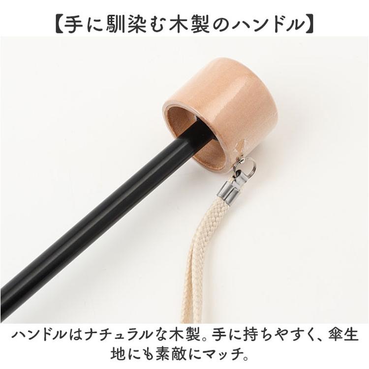 ・ハンドルはナチュラルな木製。手に持ちやすく、傘生地にも素敵にマッチ。