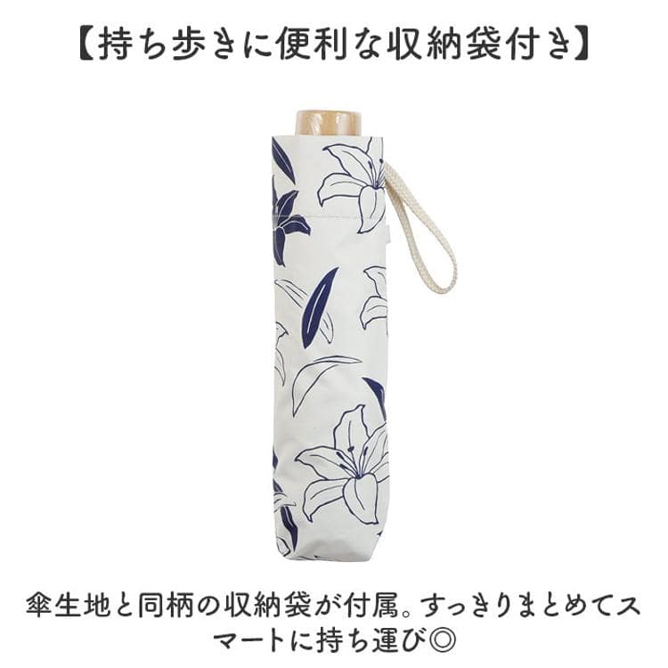 ・傘生地と同柄の収納袋が付属。すっきりまとめてスマートに持ち運び◎