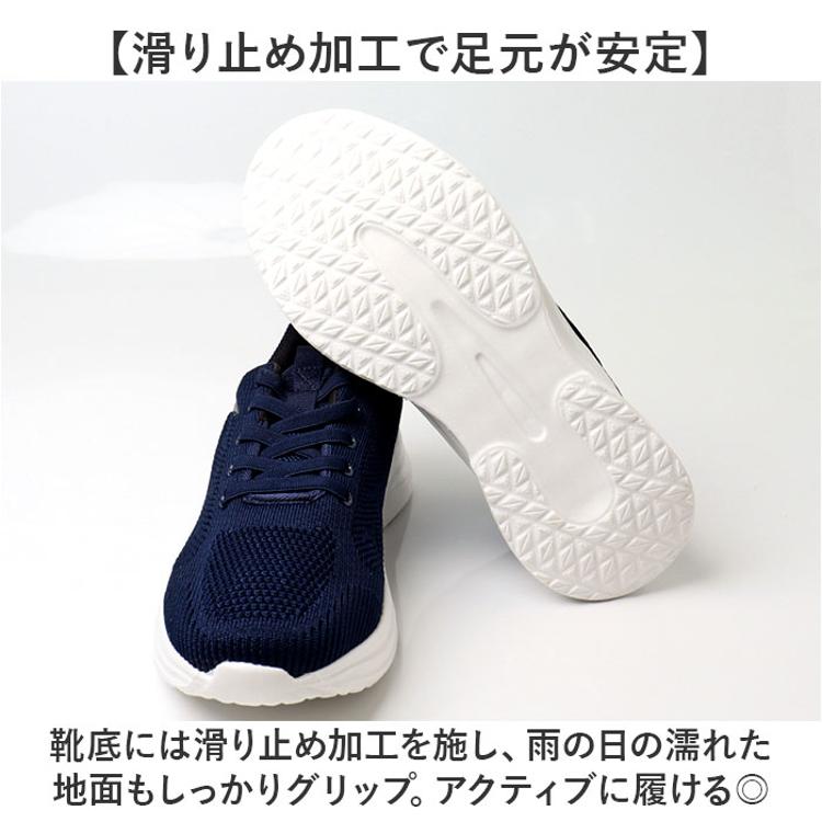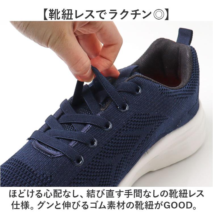 ・ほどける心配なし、結び直す手間なしの靴紐レス仕様。グンと伸びるゴム素材の靴紐がGOOD。