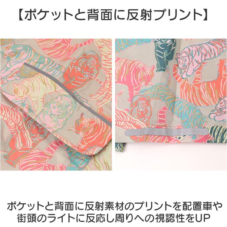 ・ポケットと背面に反射素材のプリントを配置車や街頭のライトに反応し周りへの視認性をUP