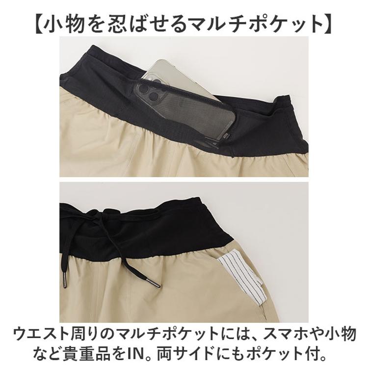 ・ウエスト周りのマルチポケットには、スマホや小物など貴重品をIN。両サイドにもポケット付。