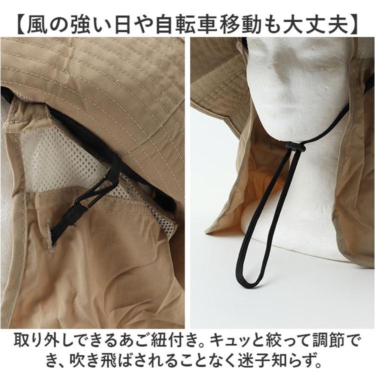 ・取り外しできるあご紐付き。キュッと絞って調節でき、吹き飛ばされることなく迷子知らず。