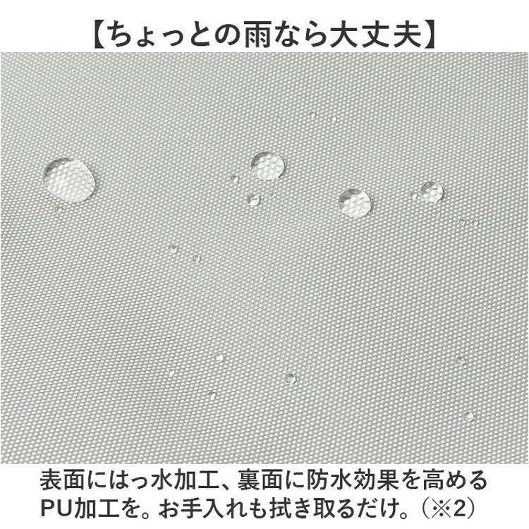 ・表面にはっ水加工、裏面に防水効果を高めるPU加工を。お手入れも拭き取るだけ。