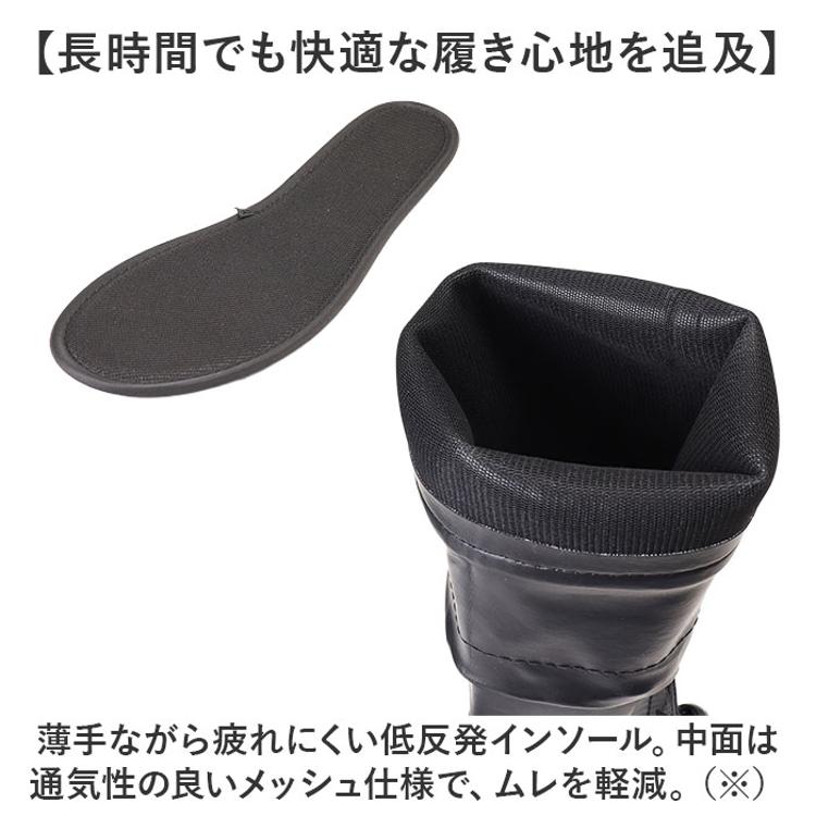・薄手ながら疲れにくい低反発インソール。中面は通気性の良いメッシュ仕様で、ムレを軽減。