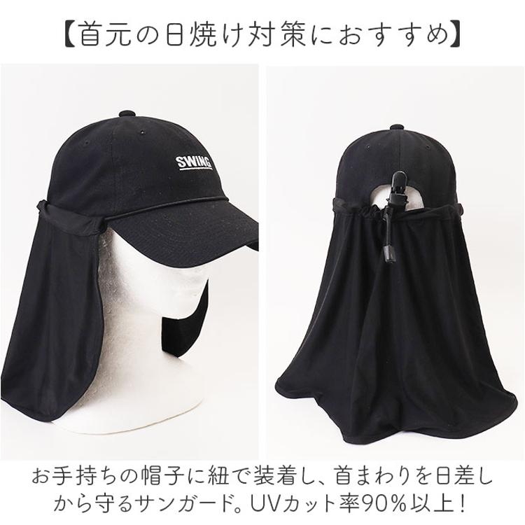 ・お手持ちの帽子に紐で装着し、首まわりを日差しから守るサンガード。UVカット率90%以上!