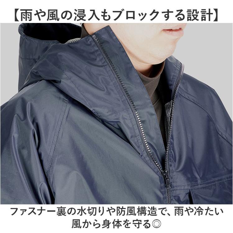 ・ファスナー裏の水切りや防風構造で、雨や冷たい風から身体を守る◎