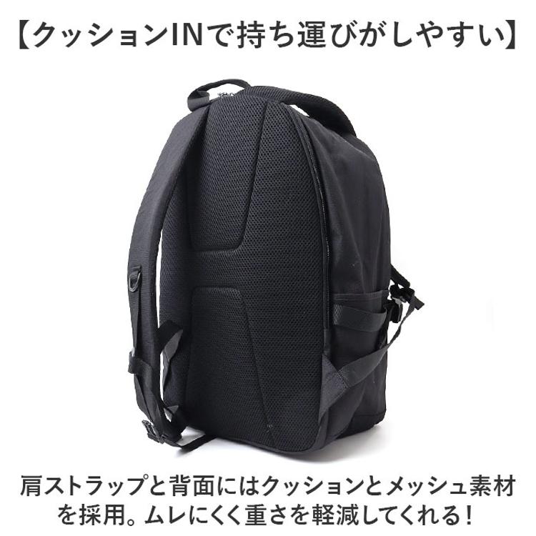 ・肩ストラップと背面にはクッションとメッシュ素材を採用。ムレにくく重さを軽減してくれる!