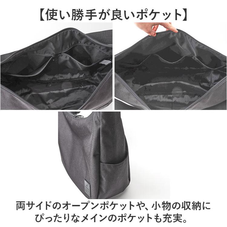 ・両サイドのオープンポケットや、小物の収納にぴったりなメインのポケットも充実。