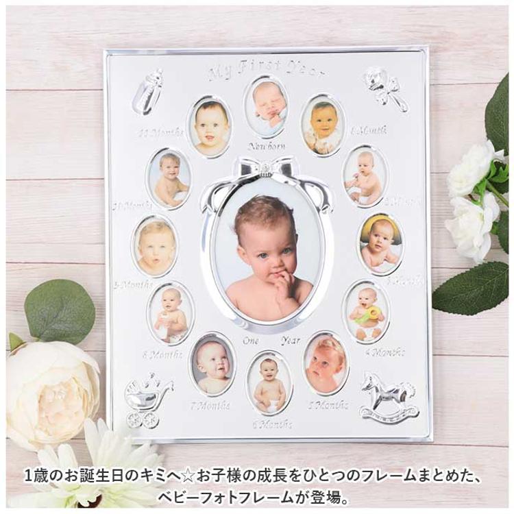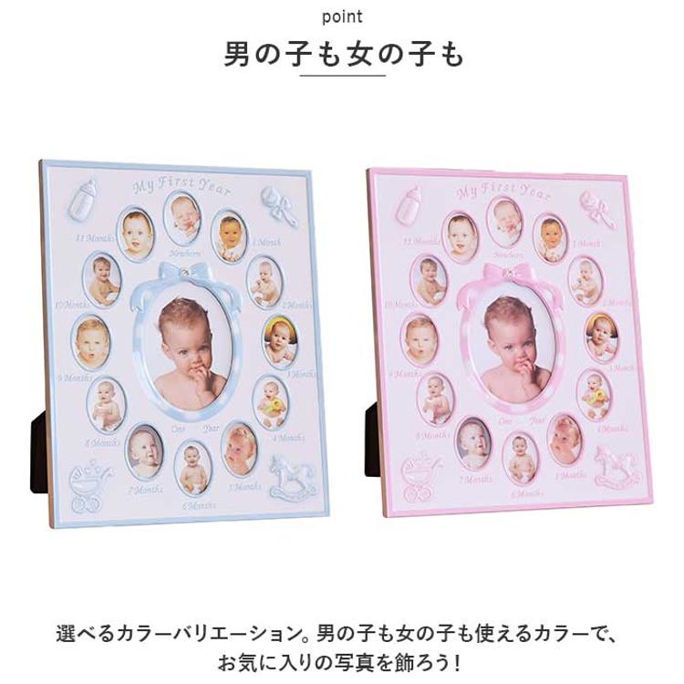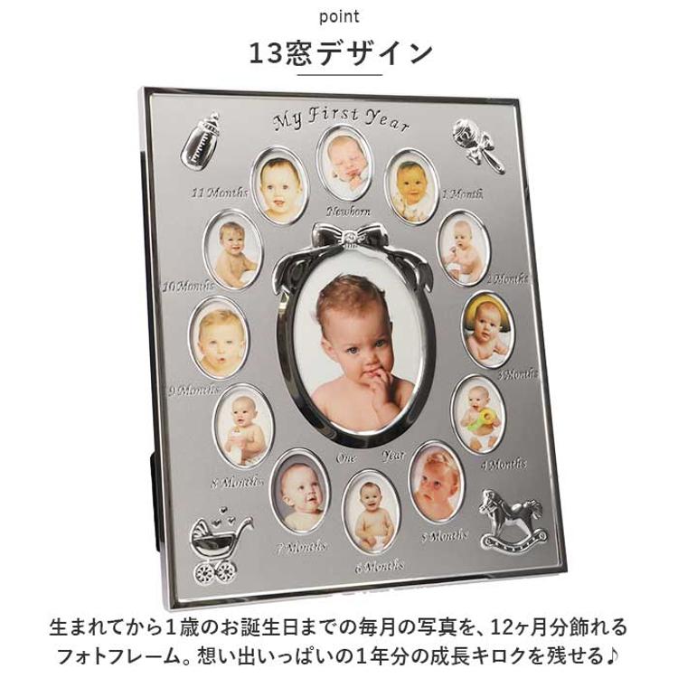 ・生まれてから1歳のお誕生日までの毎月の写真を、12ヶ月分飾れるフォトフレーム。想い出いっぱいの1年分の成長キロクを残せる♪