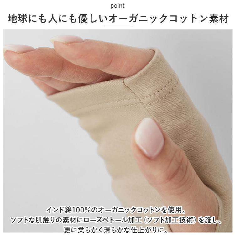 ・インド綿100%のオーガニックコットンを使用。ソフトな肌触りの素材にローズペトール加工(ソフト加工技術)を施し、更に柔らかく滑らかな仕上がりに。
