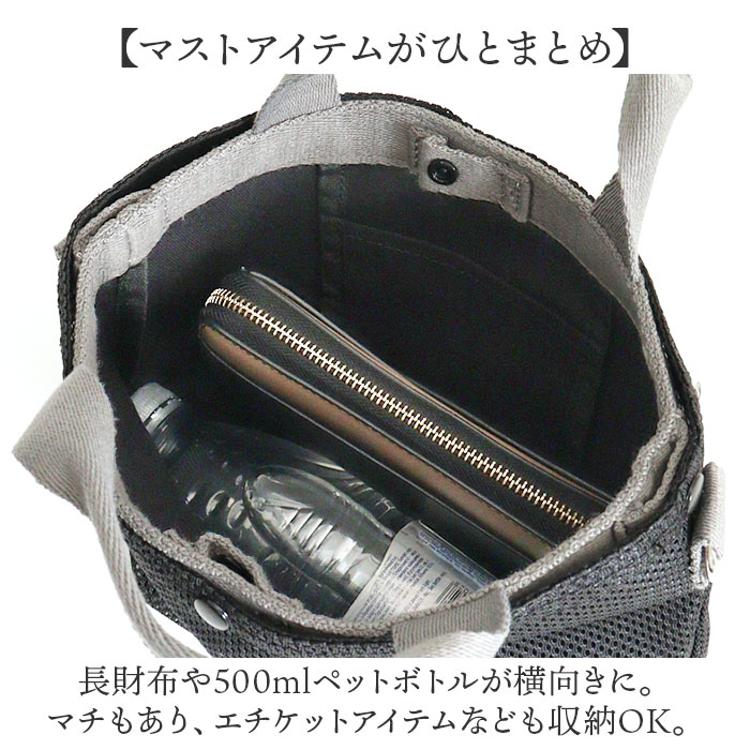 ・長財布や500mlペットボトルが横向きに。マチもあり、エチケットアイテムなども収納OK。