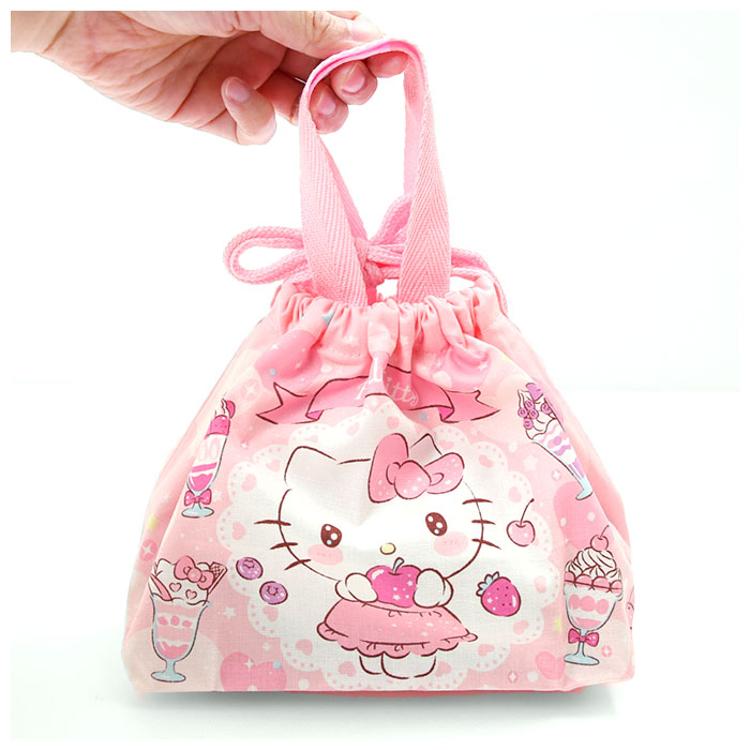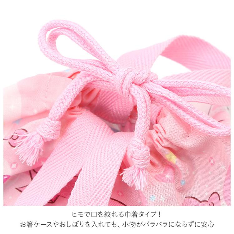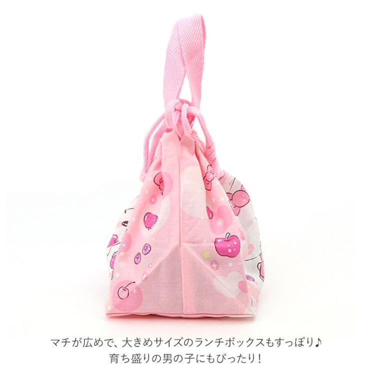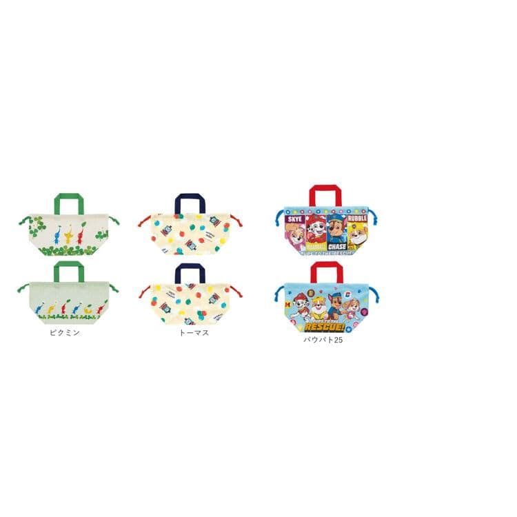 商品説明・人気キャラクターの絵柄がかわいい!口がヒモでキュッと絞れるランチ巾着。