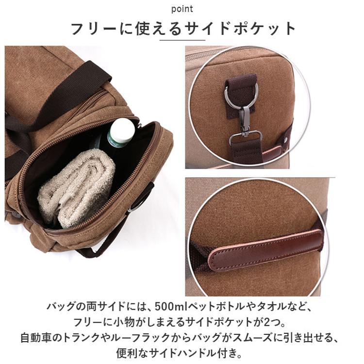 ・バッグの両サイドには、500mlペットボトルやタオルなど、フリーに小物がしまえるサイドポケットが2つ。
