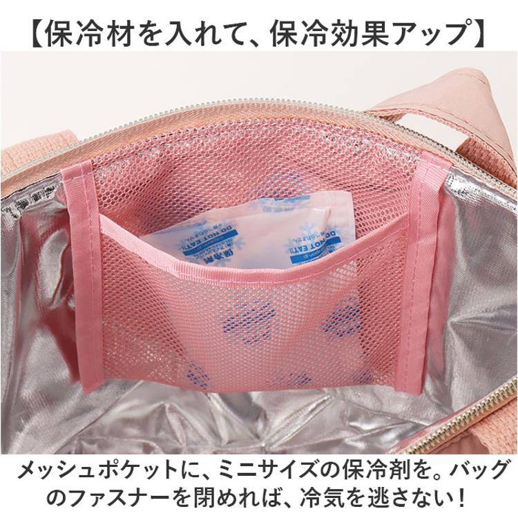 ・メッシュポケットに、ミニサイズの保冷剤を。バッグのファスナーを閉めれば、冷気を逃さない!