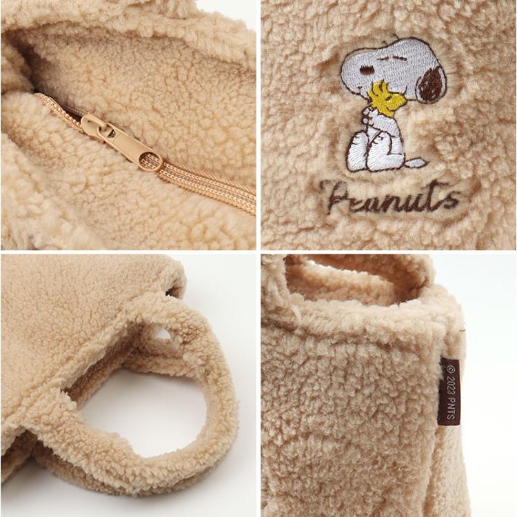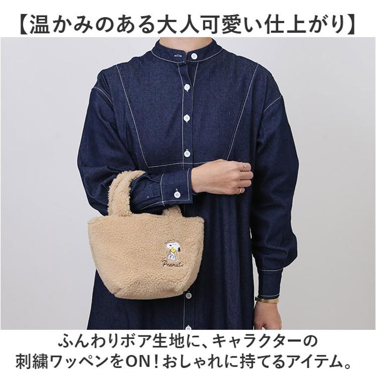 ・ふんわりボア生地に、キャラクターの刺繍ワッペンをON!おしゃれに持てるアイテム。