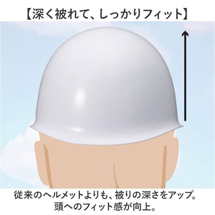 ・従来のヘルメットよりも、被りの深さをアップ。頭へのフィット感が向上。