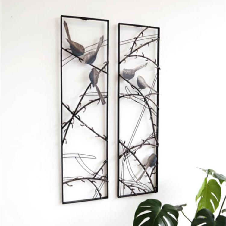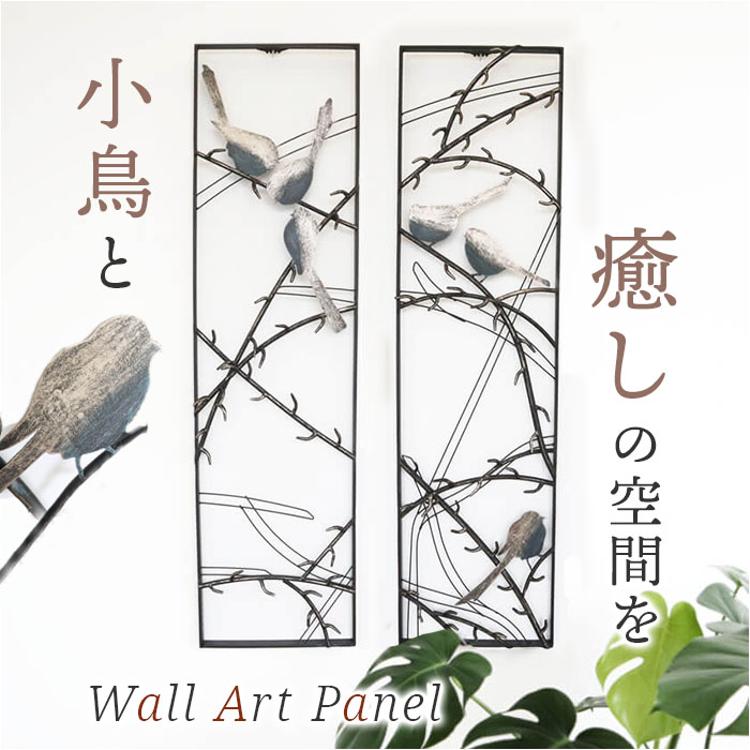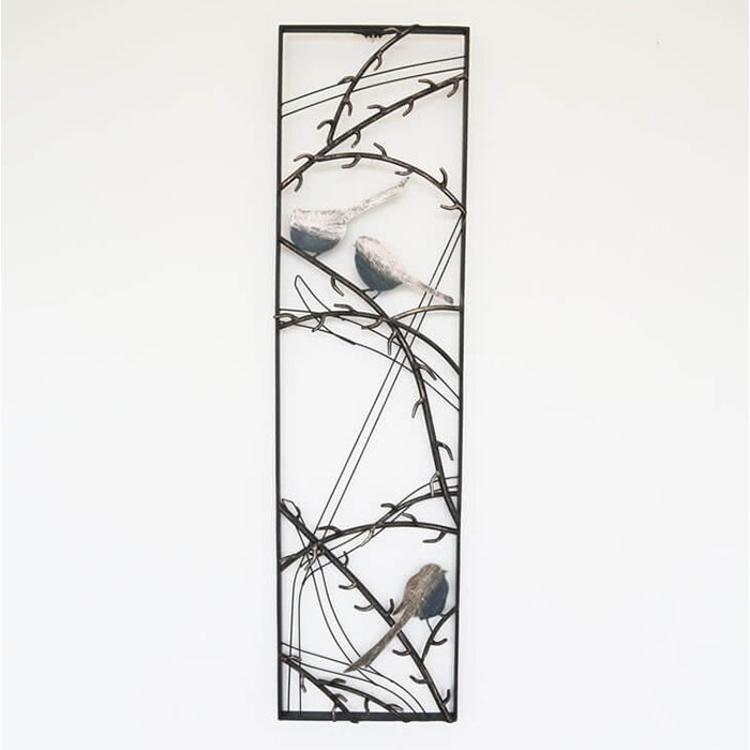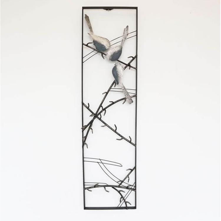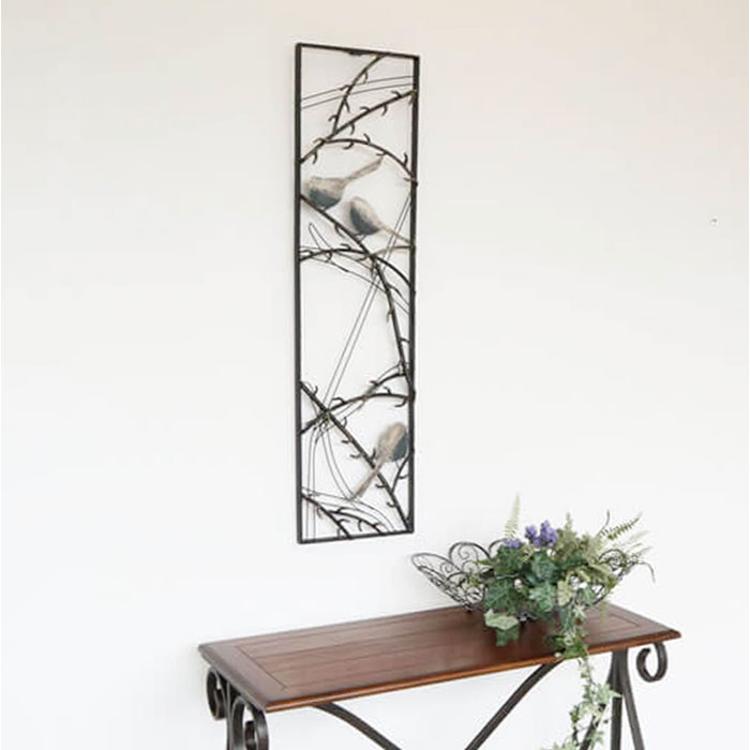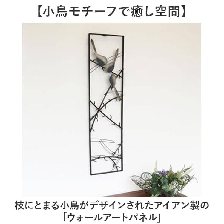 ・枝にとまる小鳥がデザインされたアイアン製の「ウォールアートパネル」