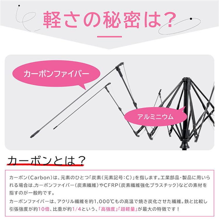 ・カーボンファイバー素材を使用で、軽量化と強風時のしなやかさを実現。強風で反り返っても傘を閉じれば元通り。