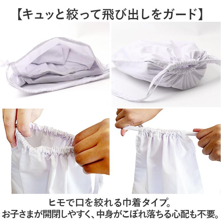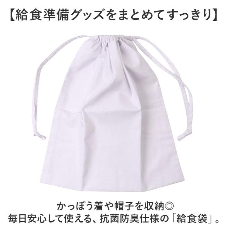 ・かっぽう着や帽子を収納◎毎日安心して使える、抗菌防臭仕様の「給食袋」。