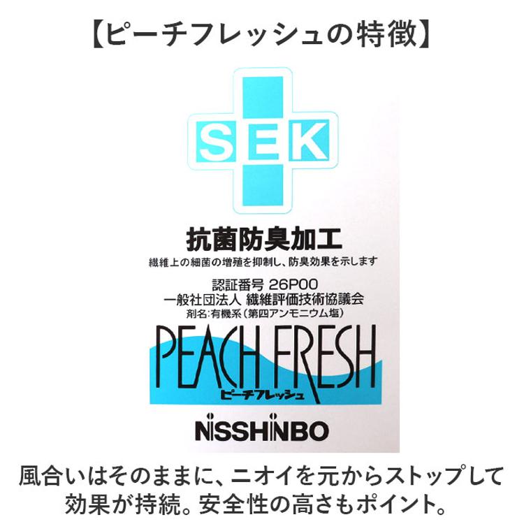 ・繊維上の細菌増殖を抑制し、防臭効果を示す”ピーチフレッシュ生地”を採用。