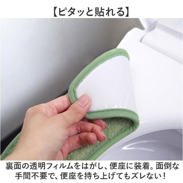 ・裏面の透明フィルムをはがし、便座に装着。面倒な手間不要で、便座を持ち上げてもズレない!