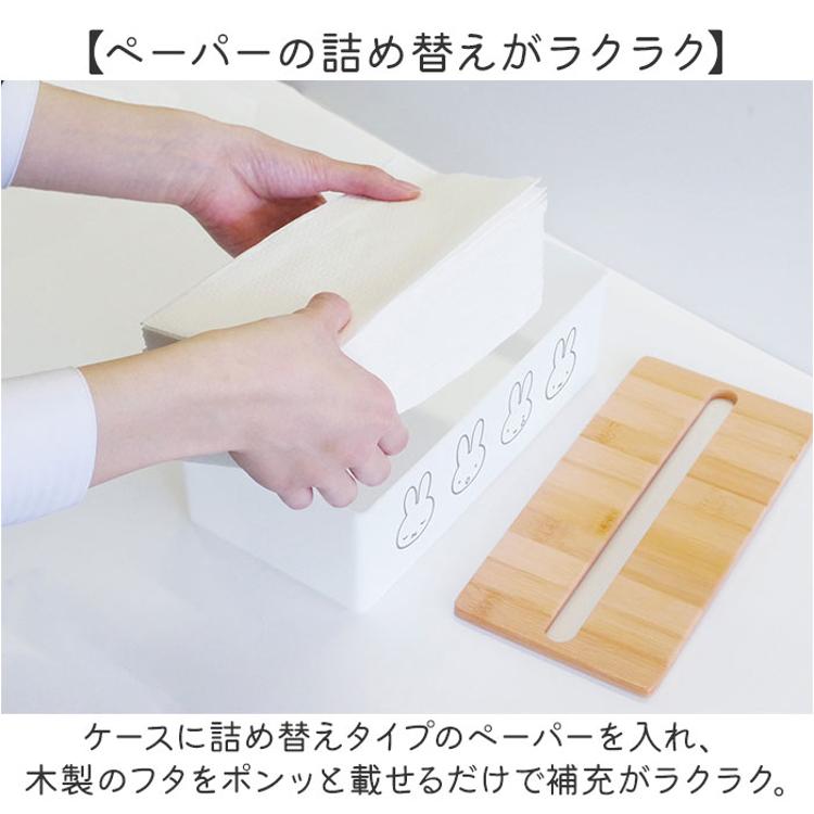 ・ケースに詰め替えタイプのペーパーを入れ、木製のフタをポンッと載せるだけで補充がラクラク。