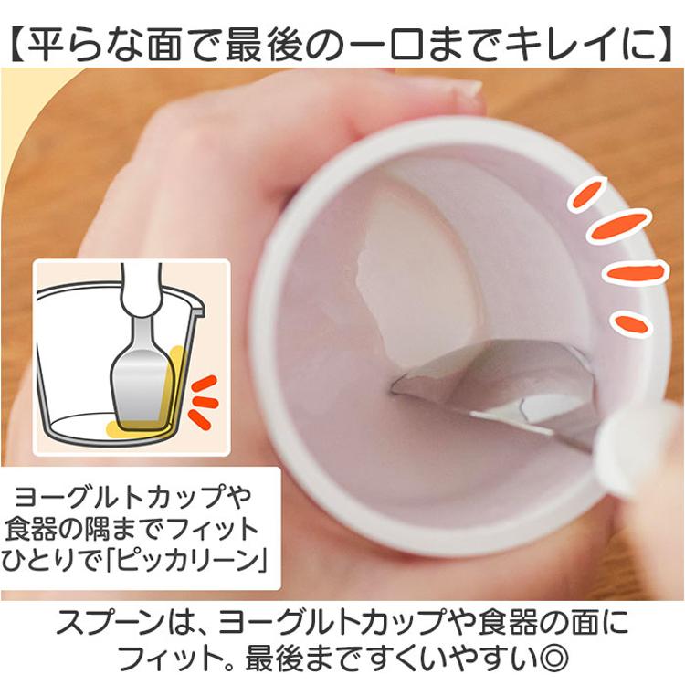 ・スプーンは、ヨーグルトカップや食器の面にフィット。最後まですくいやすい◎