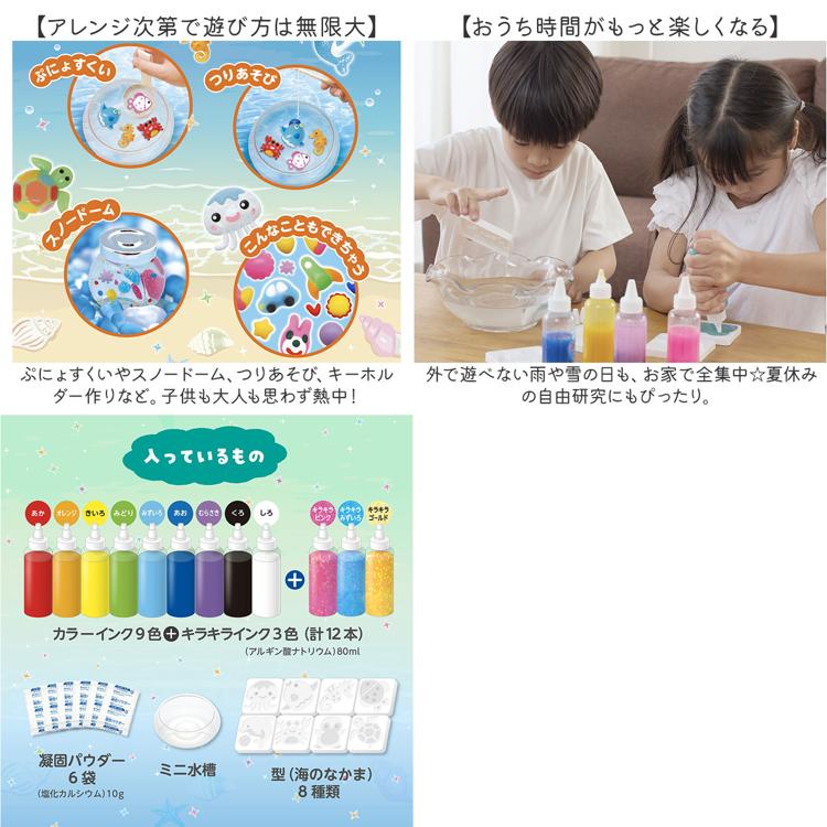 ・カラーインク9色・キラキラインク3色・凝固パウダー6袋・ミニ水槽・海のなかまの型8種類