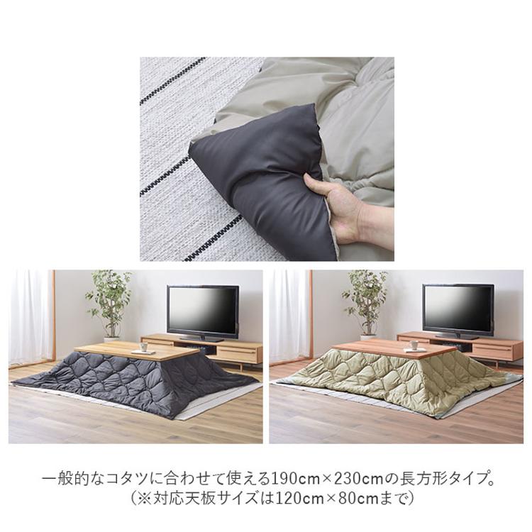 ・一般的なコタツに合わせて使える190cm×230cmの長方形タイプ。(※対応天板サイズは120cm×80cmまで)