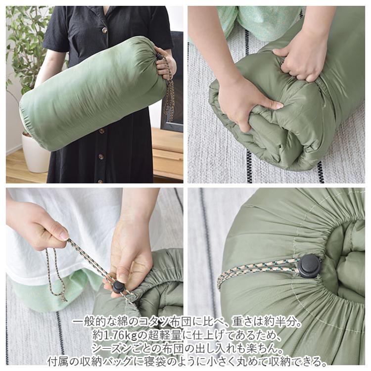 ・一般的な綿のコタツ布団に比べ、重さは約半分。約1.76kgの超軽量に仕上げてあるため、シーズンごとの布団の出し入れも楽ちん。