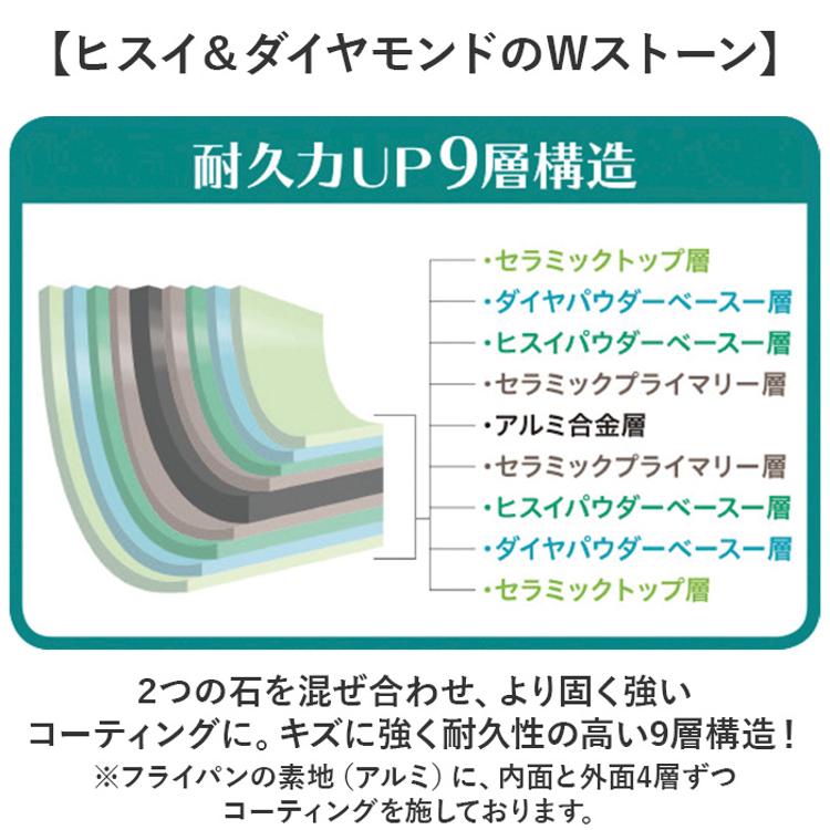 ・2つの石を混ぜ合わせ、より固く強いコーティングに。キズに強く耐久性の高い9層構造!