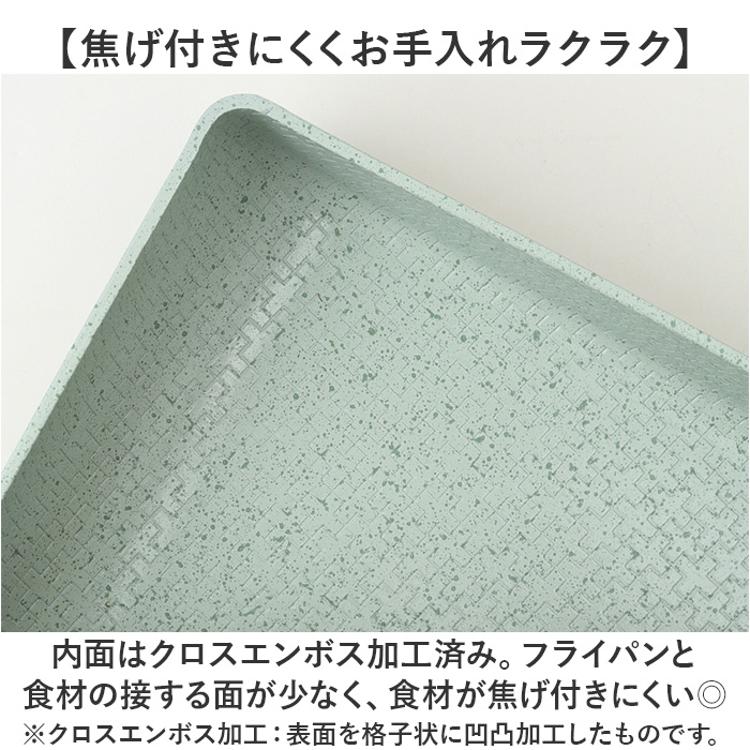 ・内面はクロスエンボス加工済み。フライパンと食材の接する面が少なく、食材が焦げ付きにくい◎